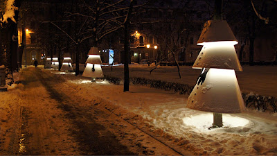 А вдоль дороги, как в почётном карауле, выстроились снеговики- ёлочки :-))